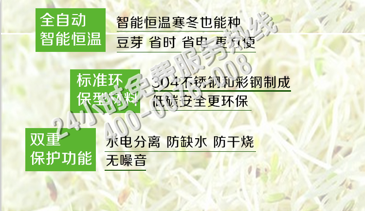 整體真正實現(xiàn)全自動化,能提供豆芽生長的適宜環(huán)境和條件。